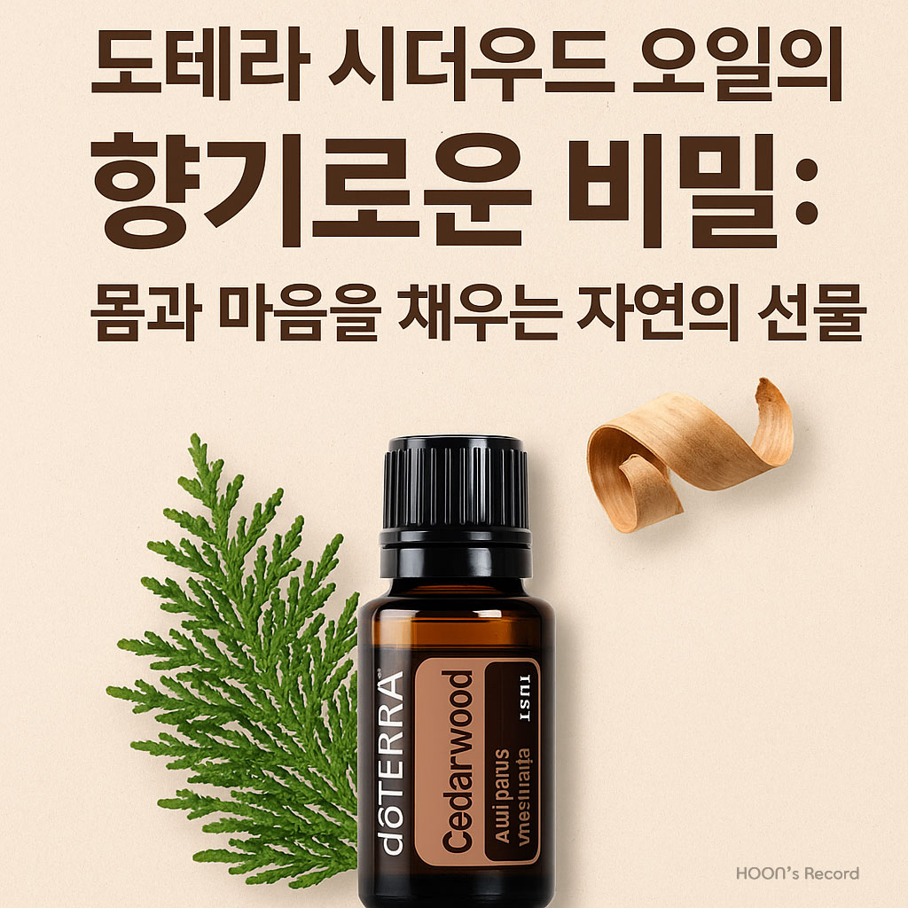 깊은 숲속을 거니는 듯한 기분, 나무결 사이로 스며드는 부드러운 향, 그리고 마음속까지 전해지는 평온함. 도테라 시더우드 오일은 단순한 아로마 오일이 아닙니다. 그것은 지친 하루 끝에 우리를 부드럽게 감싸 안아주는 ‘자연의 손길’이자, 몸과 마음 모두를 보살펴주는 천연 치유 도구입니다.