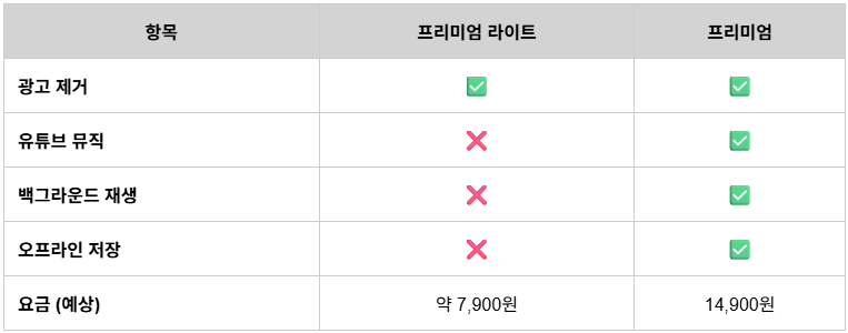 ✔ 유튜브 프리미엄 라이트가 무엇인지
